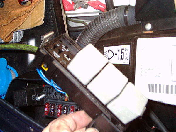 奥の黒いリレーが追加のリレーで、ヒューズBOX取り付けと友締めして取り付ける