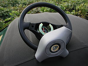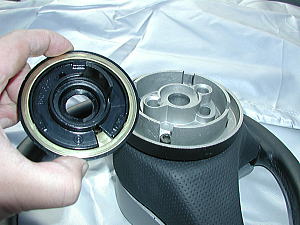 | 結構純正のステアリング好きなんだけどね〜。せっかくNが購入してきたから装着しちゃいますが、ホーン周りから外すのかと思って、ヘックスの入れようと思ったけど入らない。 | 仕方ないので引っ張ったら取れてしました。 なんて事はないです。ポッチ3箇所がはまっているだけでした。 ちなみにステアリングはナルディー製でした。 |