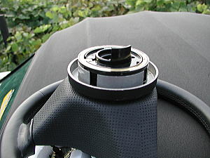 | ステアリングです。結構好きです。スペーさーを製作してしまおうかしら? | とりあえず、これが純正のボスです。流用します。 |