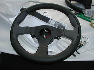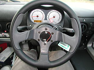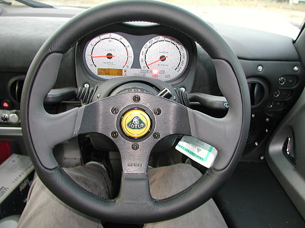 | 最後にホーン・ボタンを装着して終了です。 結構大変な作業でしたよ。さすがロータス・・・泣かせてくれました。DIY初めて方には辛いでしょうね。 |